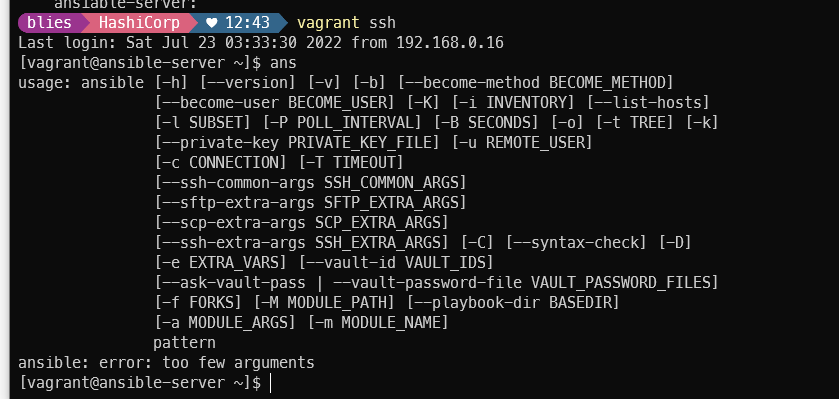 vagrant ssh ansible-server