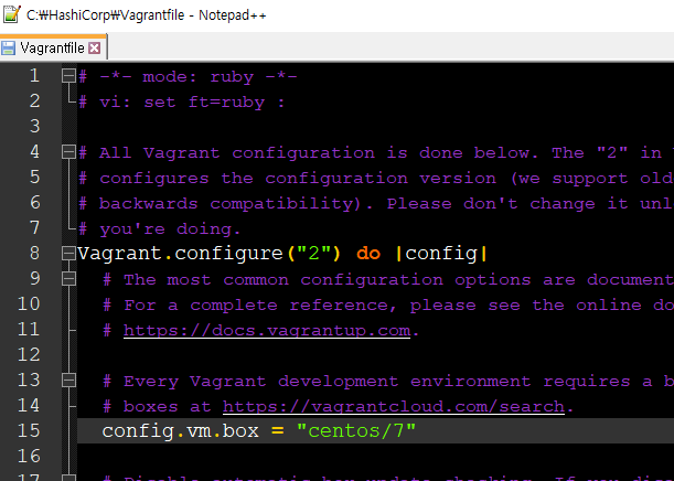 centos7을 사용할 예정이기 때문에 vagrantfile에서 config.vm.box = "centos/7" 로 변경