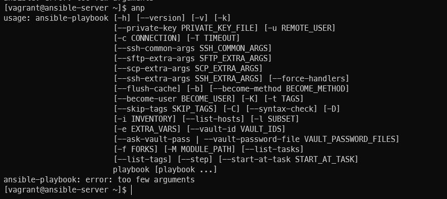 - "alias anp='ansible-playbook'"