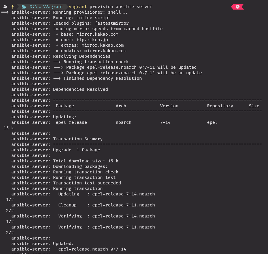 cfg.vm.provision "shell", inline: "yum install epel-release -y"