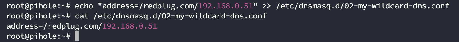 echo "address=/{사용하고자하는도메인}/{넘길IP주소}" >> /etc/dnsmasq.d/02-my-wildcard-dns.conf