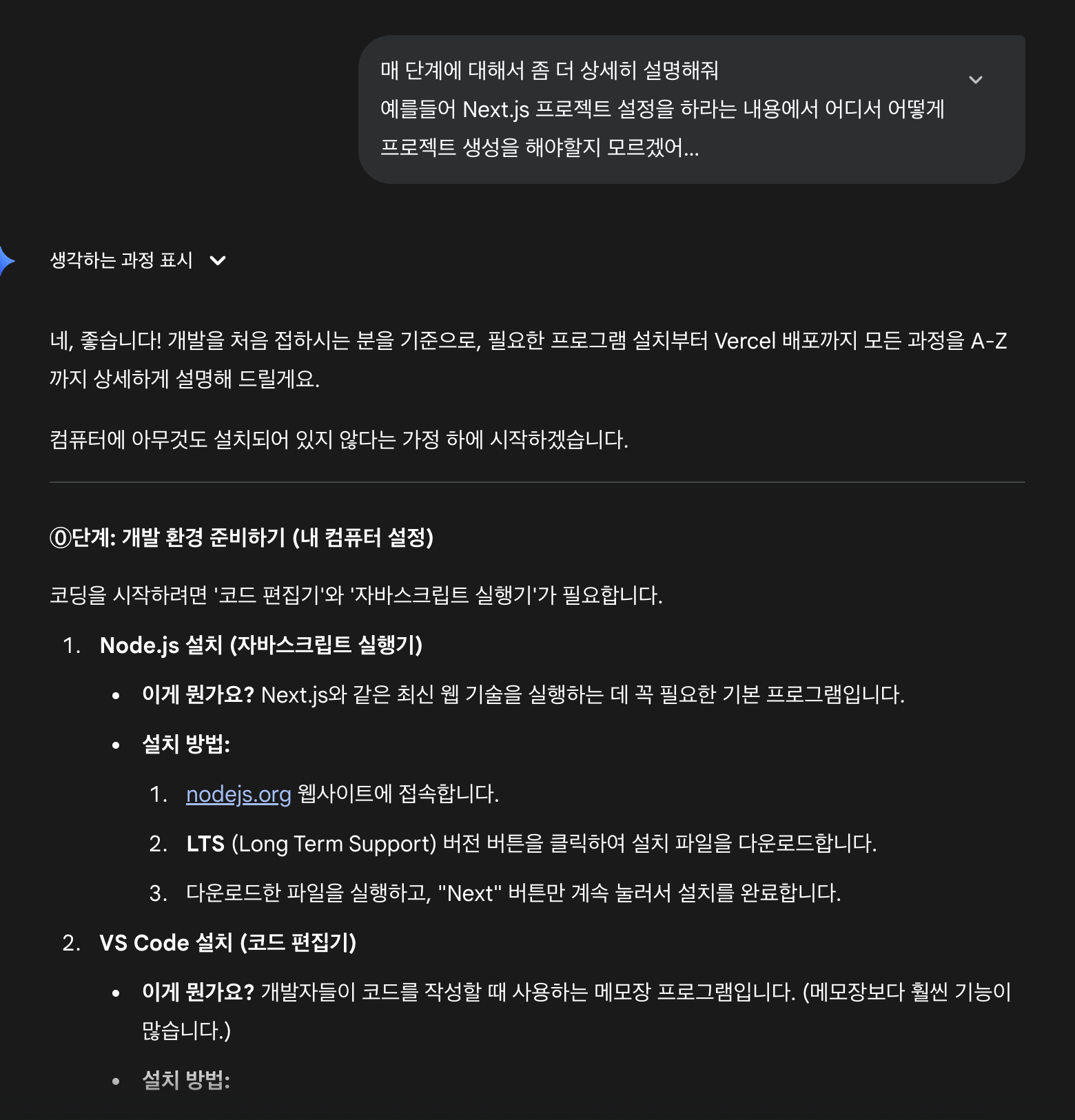 잘 모르겠다고 다시 처음부터 하나 하나 천천히 알려달라고 물어보니 상세하게 가이드를 주기 시작