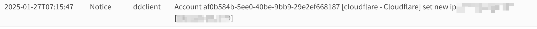 정상적으로 적용됬을 경우 OPNsense Dynamic DNS Log File 에 로그가 나오며 실제 Cloudflare에도 업데이트가 되어있다.