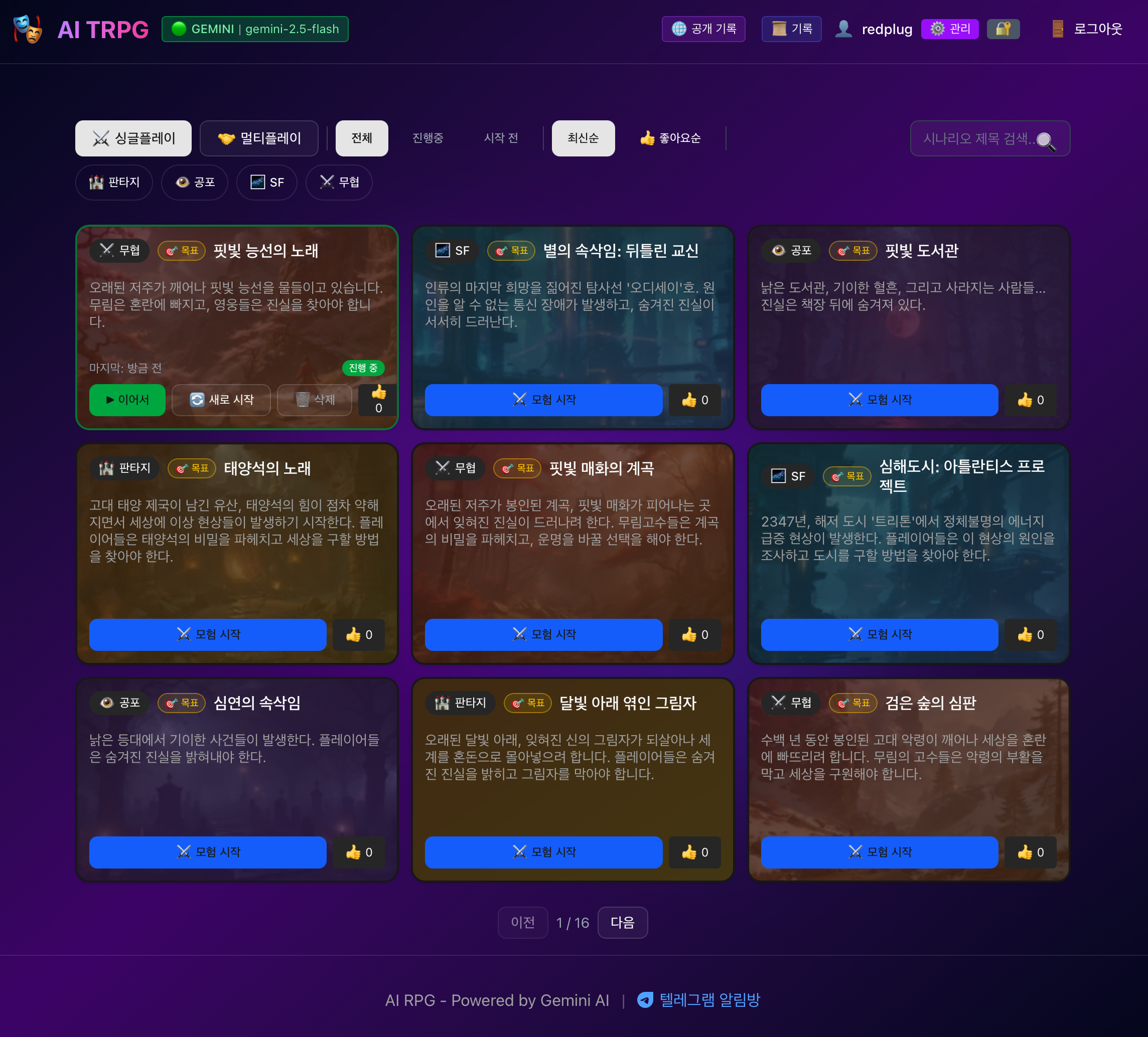 바이브 코딩 mhn.quest 빌드 스크린샷 웹페이지