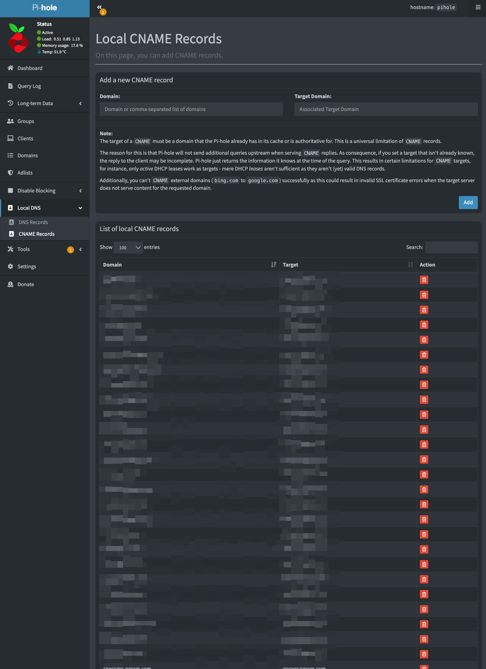 Pi-hole에서 Local DNS에 와일드카드 DNS 등록 방법