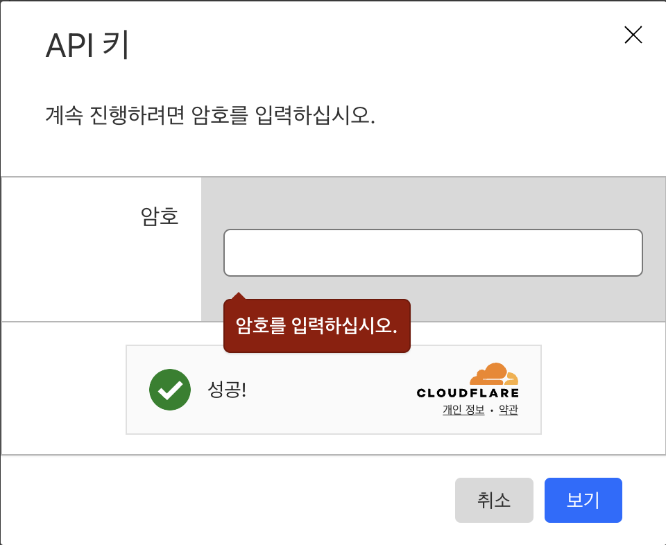 1. Cloudflare 로그인 > 우측 상단 사람모양 > 내 프로필 > API 토큰 > Global API Key 보기